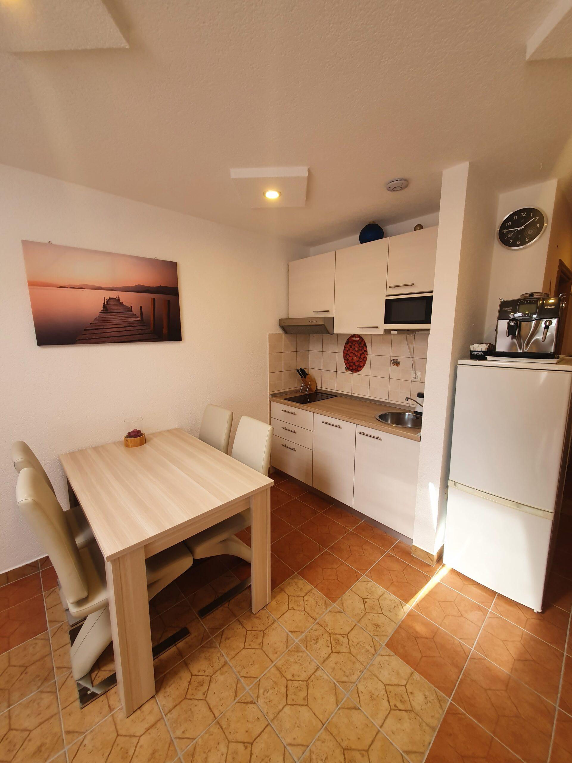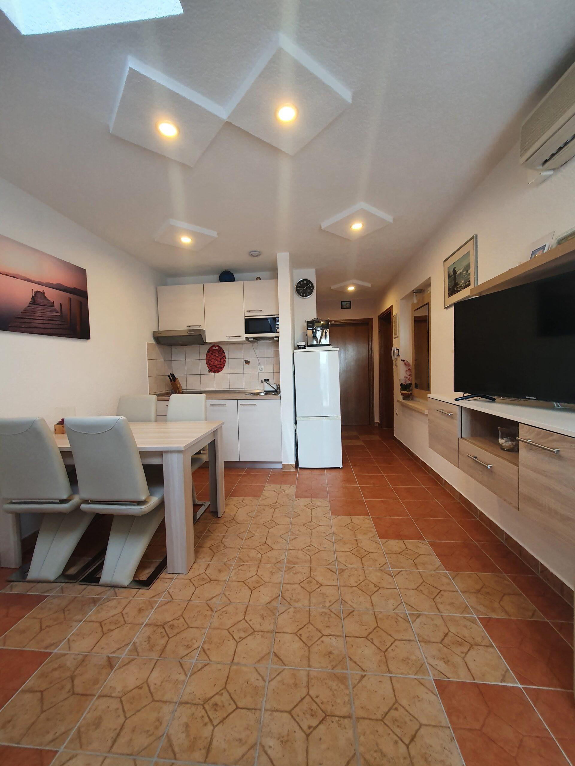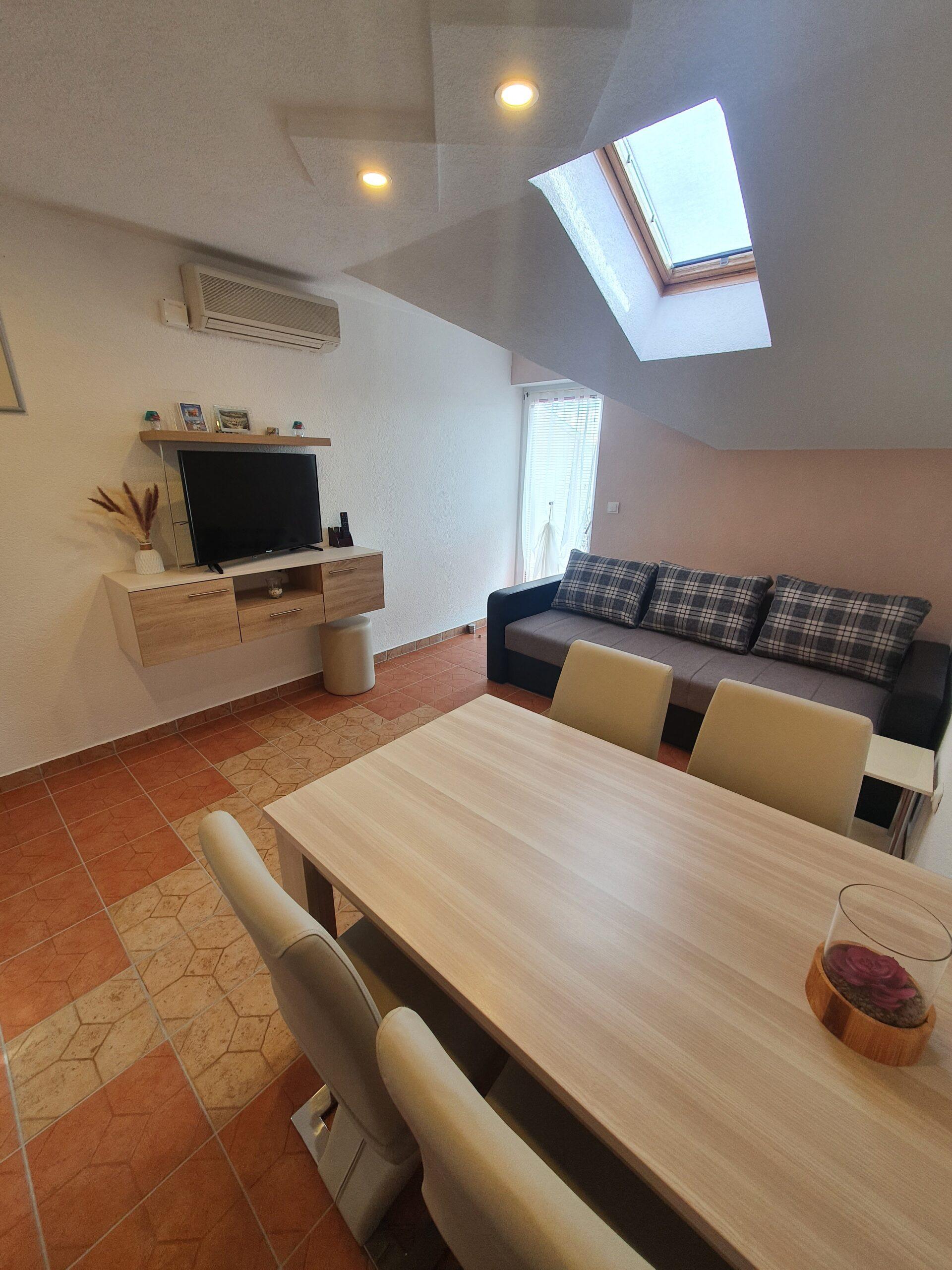 Ovaj apartman je idealan za 3 osobe (2+1). Sastoji se od jedne spavaće sobe s duplim krevetom (180×200),kupaonicom,kuhinjom i dnevnim boravkom sa udobnim ležajem na razvlačenje(180×200). Ovaj Apartman ima i balkon koji je opremljen vrtnim namještajem za jutarnje ispijanje kavice uz izlazak sunca.